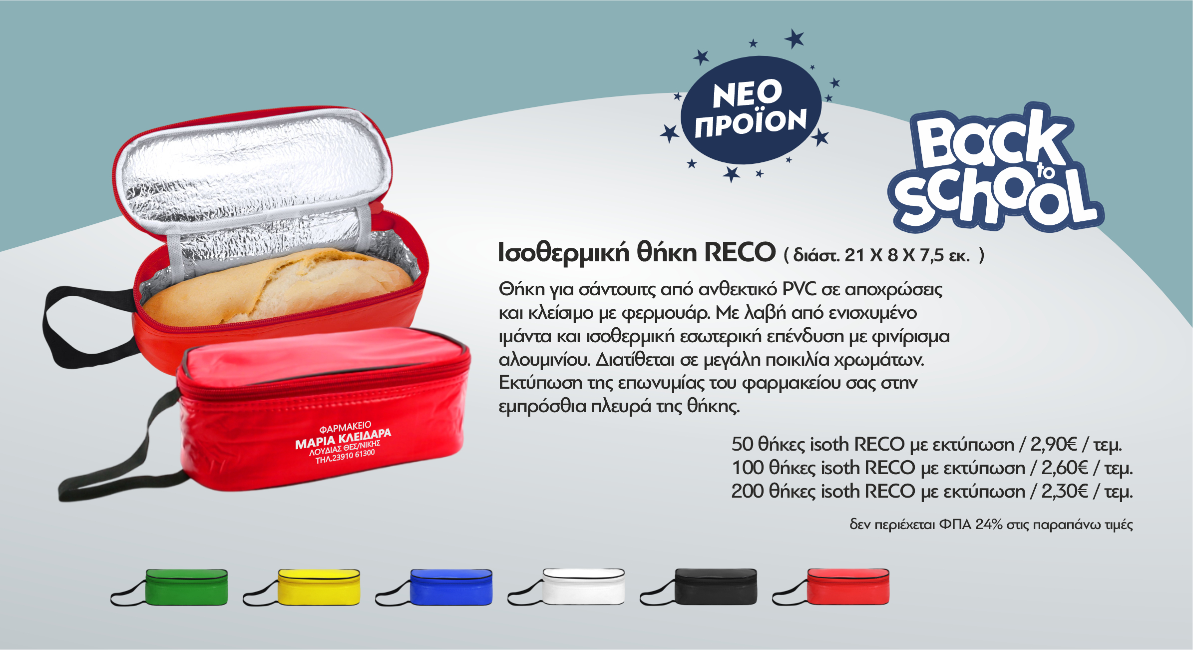 50 θήκες isoth RECO με εκτύπωση / 2,90€ / τεμ.