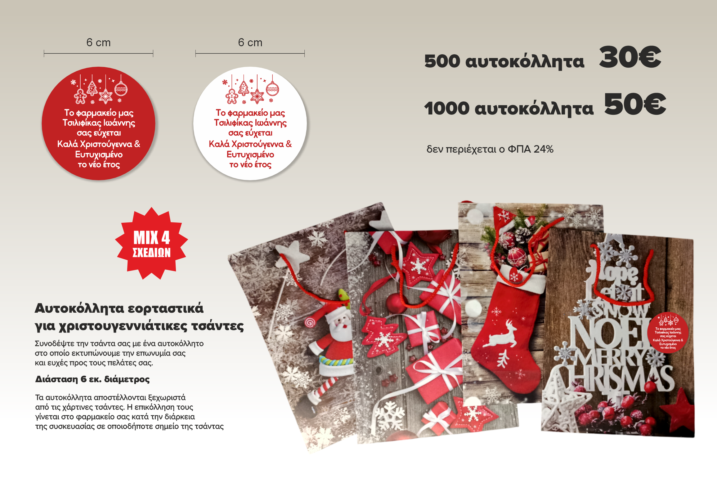 Αυτοκόλλητα εορταστικά για χριστουγεννιάτικες τσάντες
