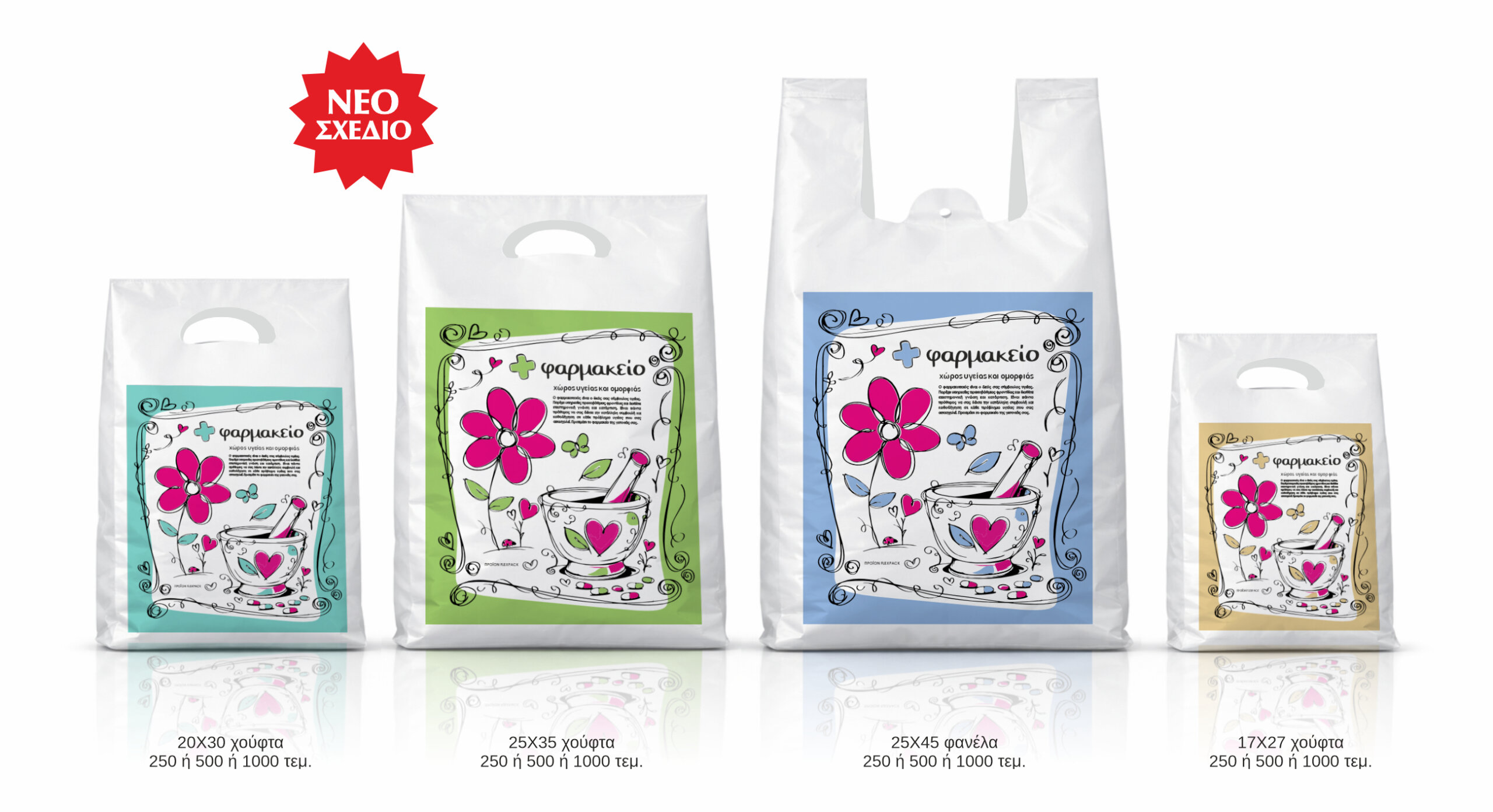 Στην GRAPHONE κατανοούμε τις ανάγκες του σύγχρονου φαρμακείου. Γι’ αυτό δημιουργήσαμε τη μηνιαία συνδρομή FLEXPACK, που ελευθερώνει το φαρμακείο σας από την έγνοια της παραγγελίας σακούλας φαρμακείου. Με το FLEXPACK, κάθε μήνα λαμβάνετε 250 ή 500 ή 1000 σακούλες σε όλα τα απαραίτητα μεγέθη ( 17Χ27, 20Χ30, 25Χ35, 25Χ45 ), απευθείας στην πόρτα σας. Ξεχάστε τις ελλείψεις και τις χρονοβόρες διαδικασίες. Το FLEXPACK σας δίνει την ελευθερία να εστιάσετε εκεί που πραγματικά χρειάζεται, στην εξυπηρέτηση των πελατών σας. Με ένα κλικ, οι σακούλες σας έρχονται κάθε μήνα στην ώρα τους.