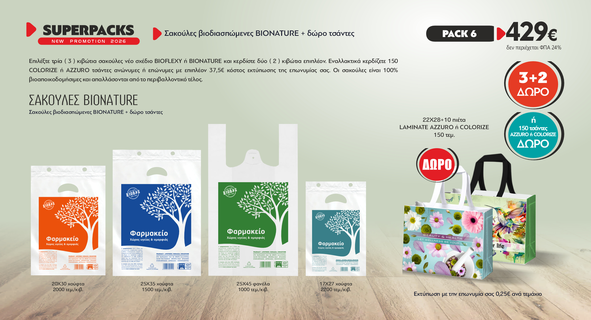 🎁 Δώρο με κάθε πακέτο : 2 κιβώτια επιλογής σας ή 150 τσάντες Laminate AZZURO ή COLORIZE ( 22X28+10 πιέτα ), ιδανικές για επαναλαμβανόμενη μεταφορά.